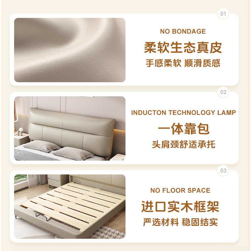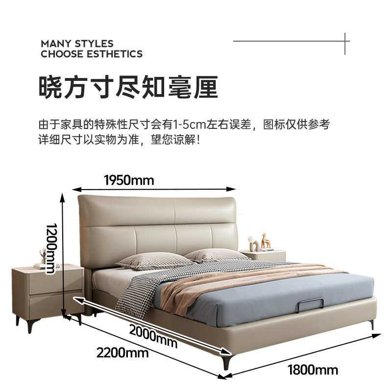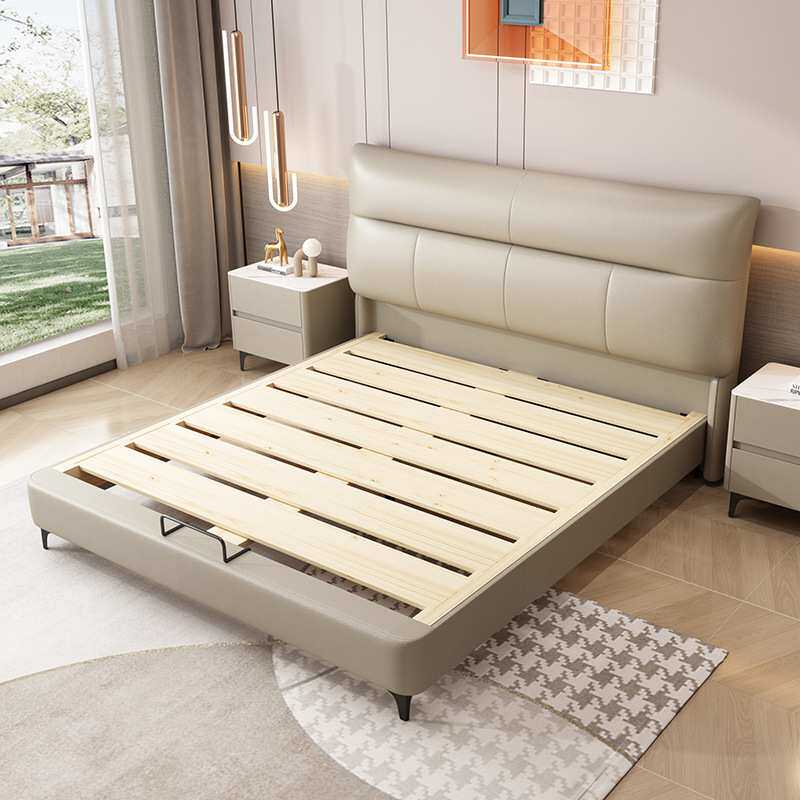 实木真皮床现代简约网红豆腐块齐边床主卧床婚床北欧风皮艺床定制