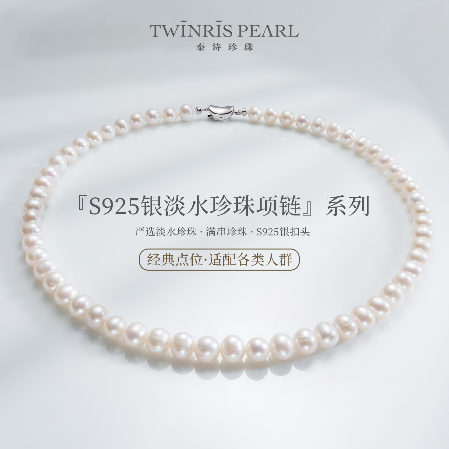 泰诗珍珠S925银淡水珍珠项链时尚简约珠宝首饰7-8mm
