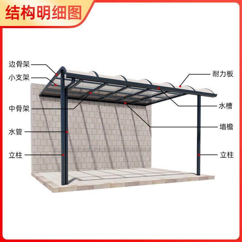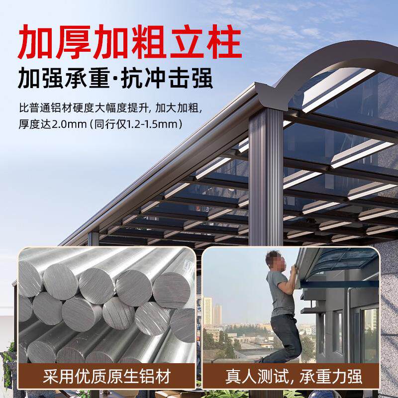 PC耐力板铝合金雨棚家用阳台露台院子棚遮阳防晒阳光房庭院遮阳棚