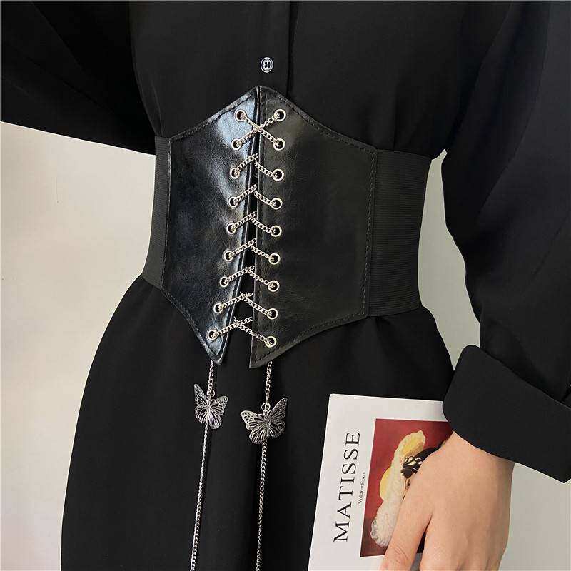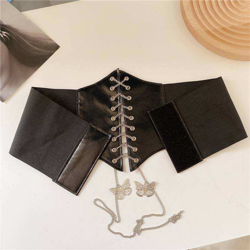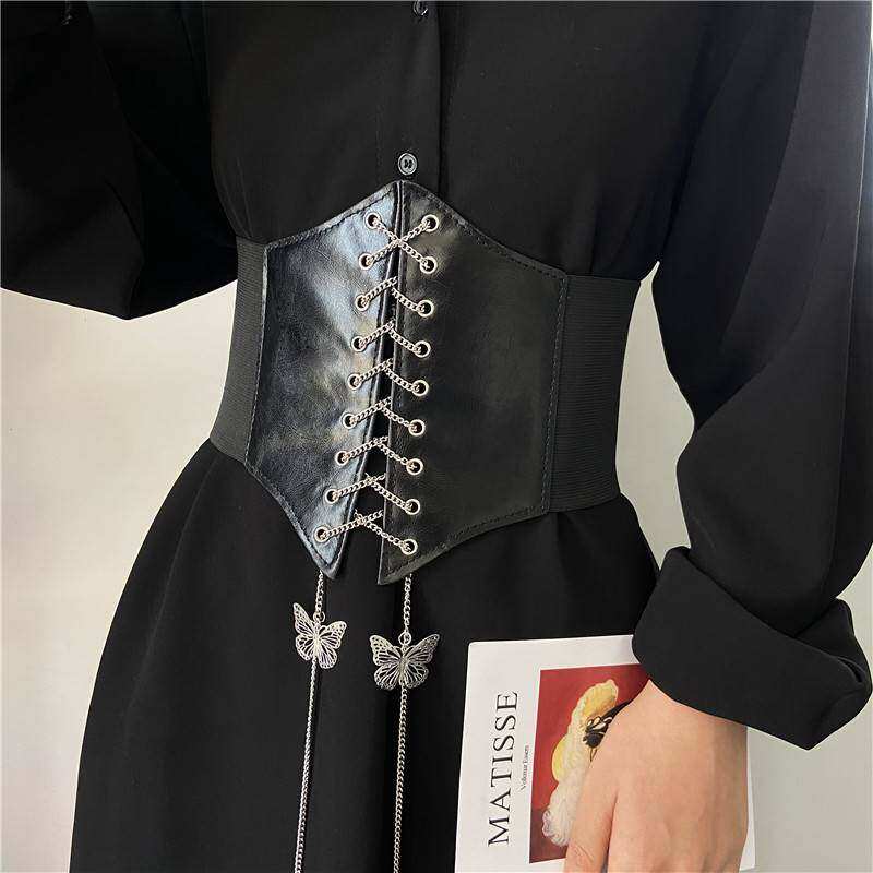 设计感金属松紧蝴蝶弹力腰封欧美百搭配连衣裙子西装衬衫链条腰带