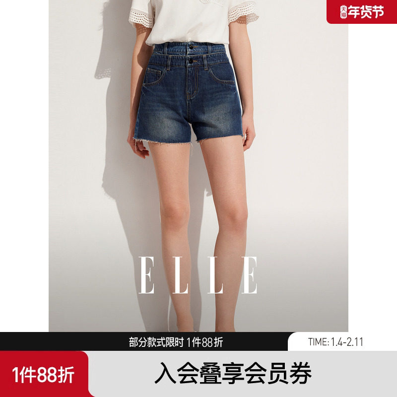 ELLE法式设计感高腰显瘦牛仔短裤女2025夏季新款复古小众气质裤子