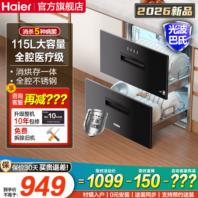 海尔碗筷消毒柜家用小型嵌入式厨房餐具消毒碗柜烘干一体机12LCS