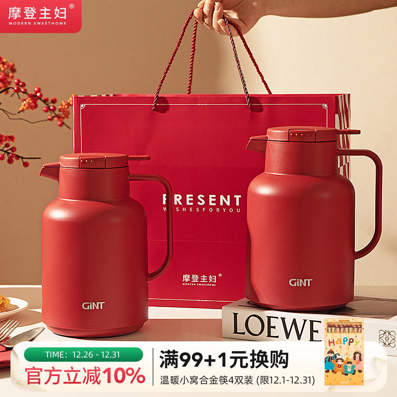 摩登主妇红色保温壶陪嫁物品女方全套水壶结婚一对新婚礼物热水瓶