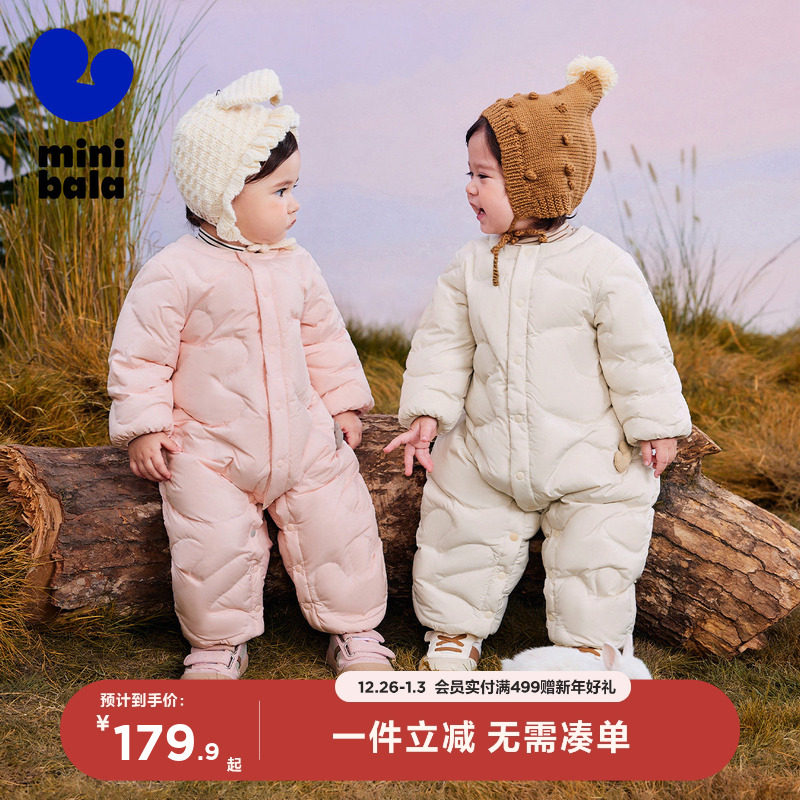 迷你巴拉巴拉婴儿羽绒服连体衣冬季宝宝儿童保暖加厚爬服外出衣服