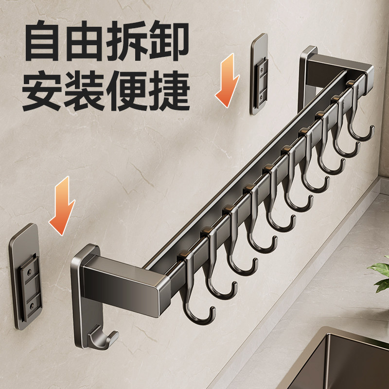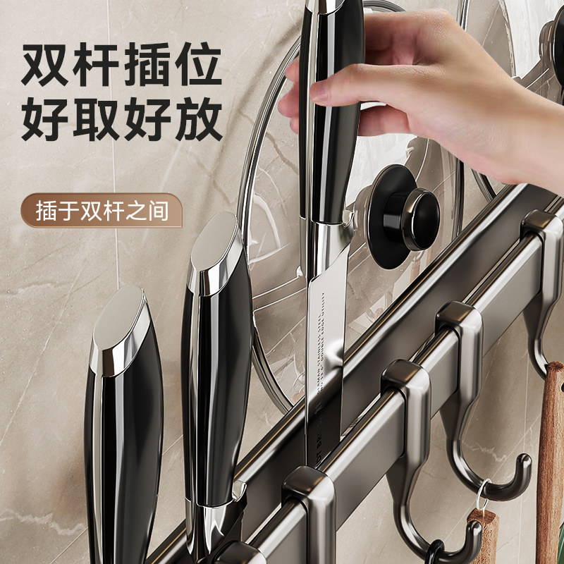 厨房挂钩免打孔挂杆锅勺子铲子挂架多功能置物架壁挂式收纳刀具