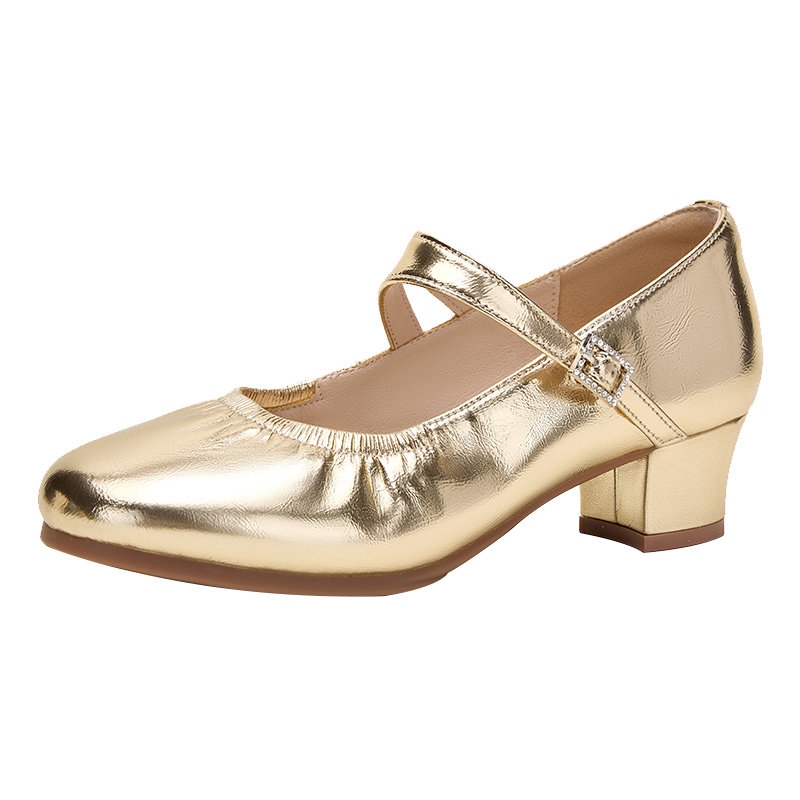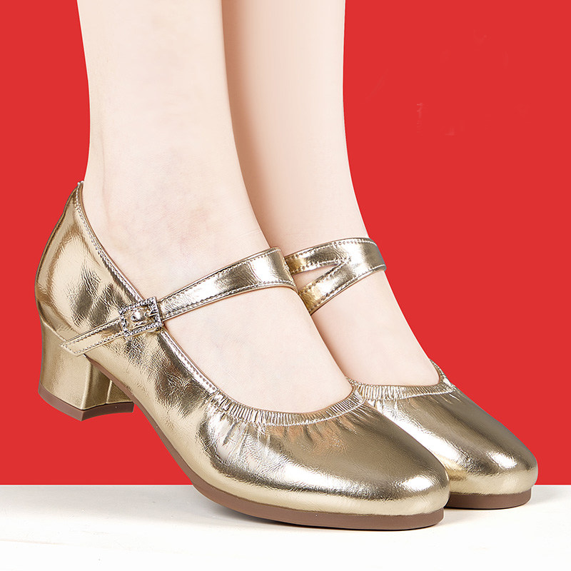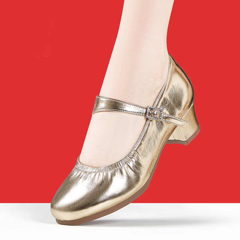 软底广场舞鞋金色牛皮舞蹈鞋防滑跳舞鞋专业拉丁舞鞋女透气百搭款