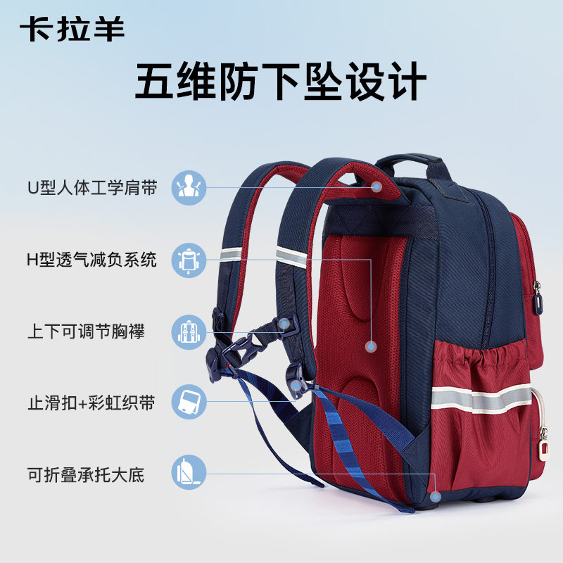 卡拉羊1-4-6年级小学生防下坠风琴书包减负轻便女大容量双肩包男