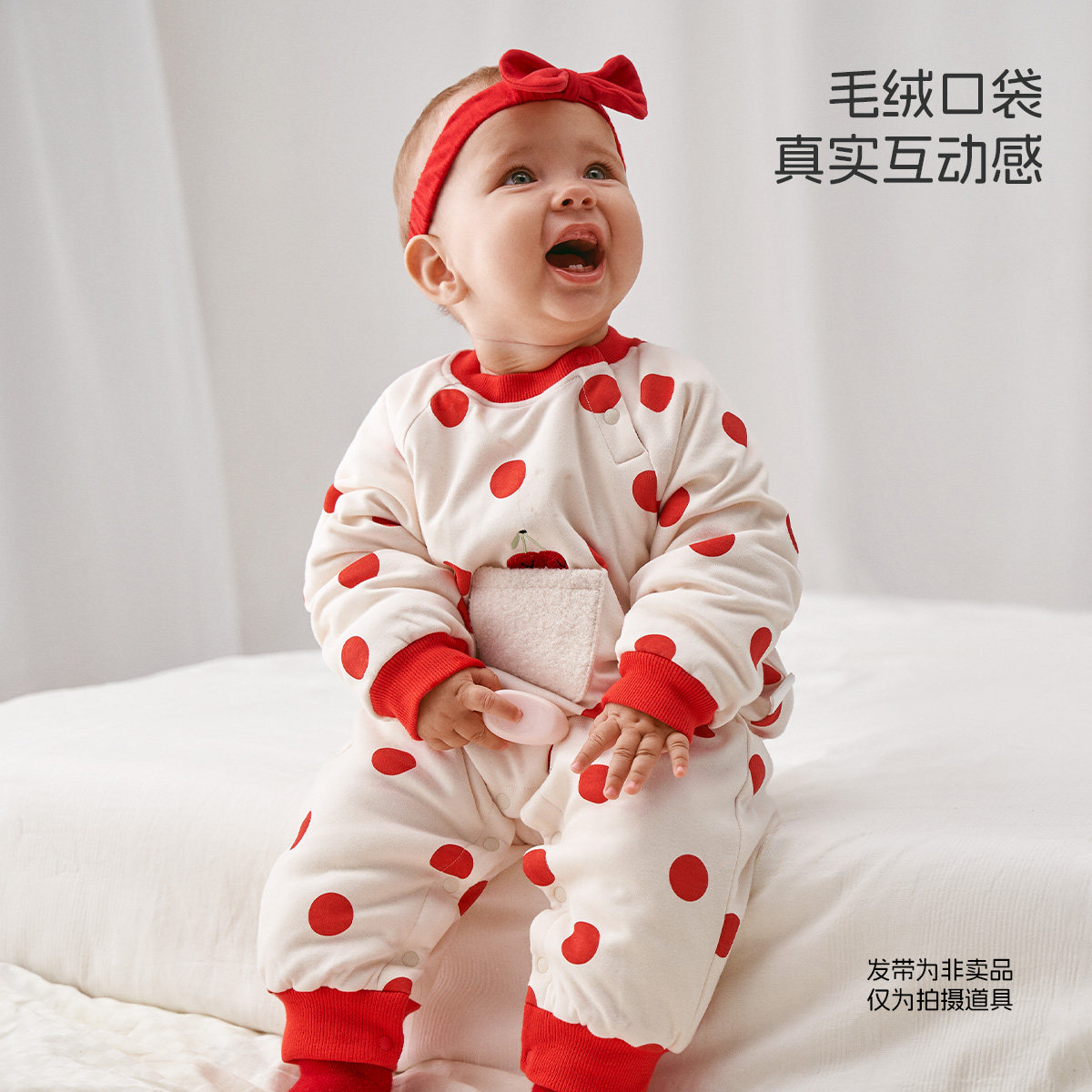 babycare冬季保暖山茶花连体衣宝宝包屁衣新生儿爬服外出婴儿衣服