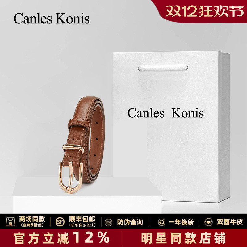 Canles Konis真皮皮带女2025新款棕色细款腰带女装饰配裙子高级感