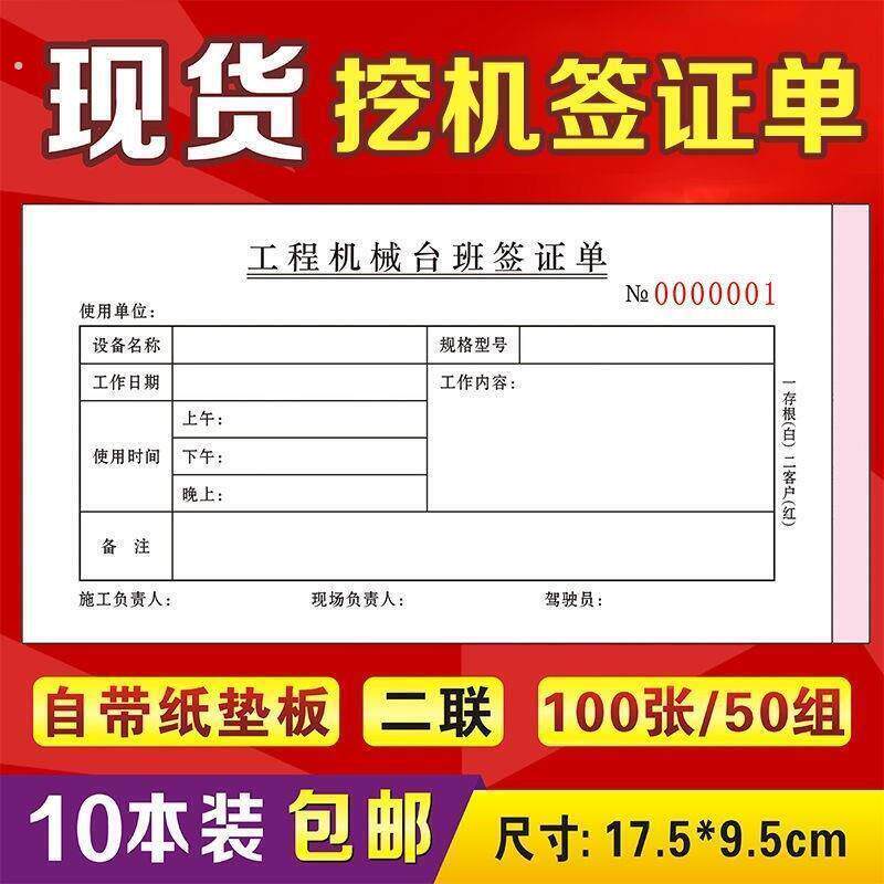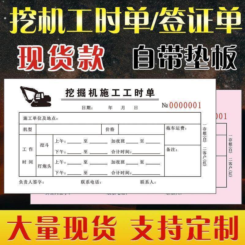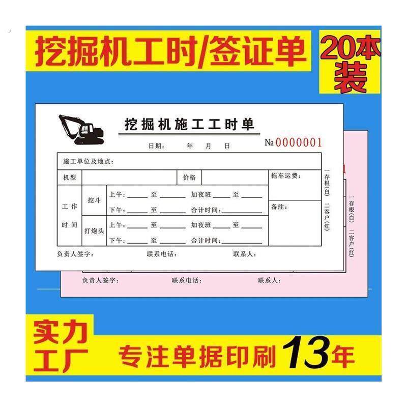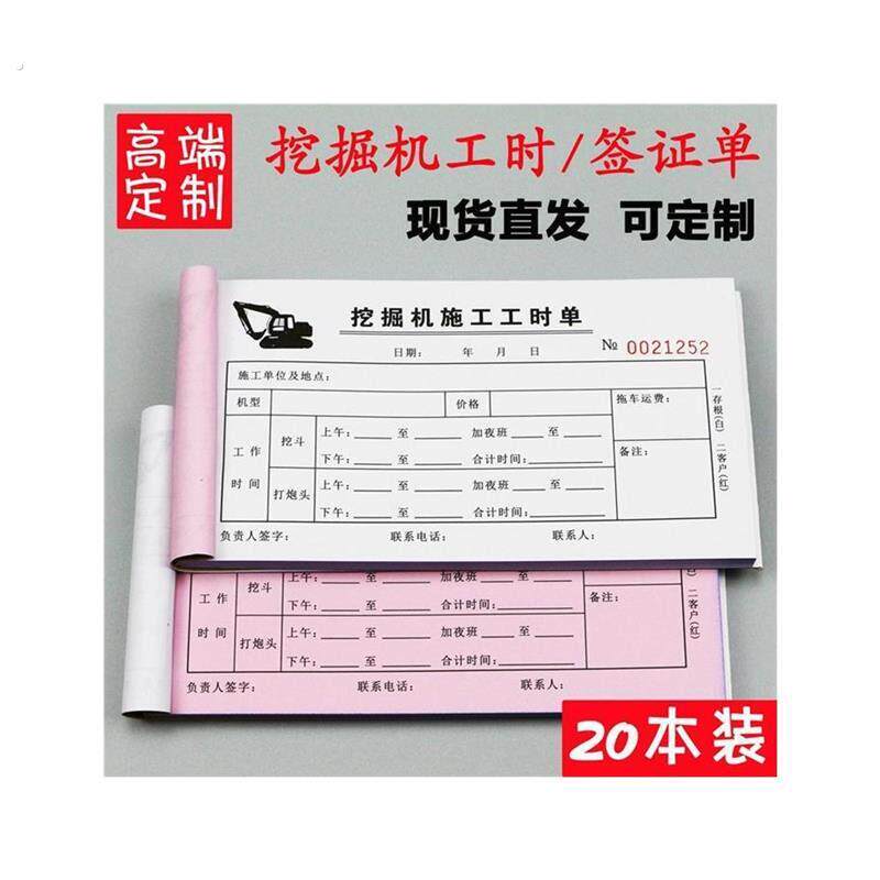 挖机台班签单挖掘机施工工时单台班签证单定做计时专用二联三联单