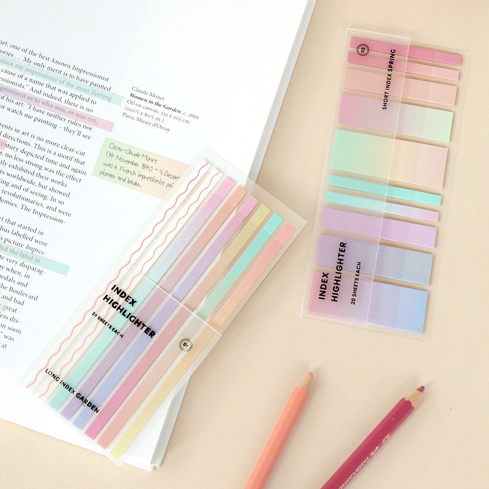 韩国iconic荧光色便签贴索引贴PET塑料可写书本重点标记贴便利贴