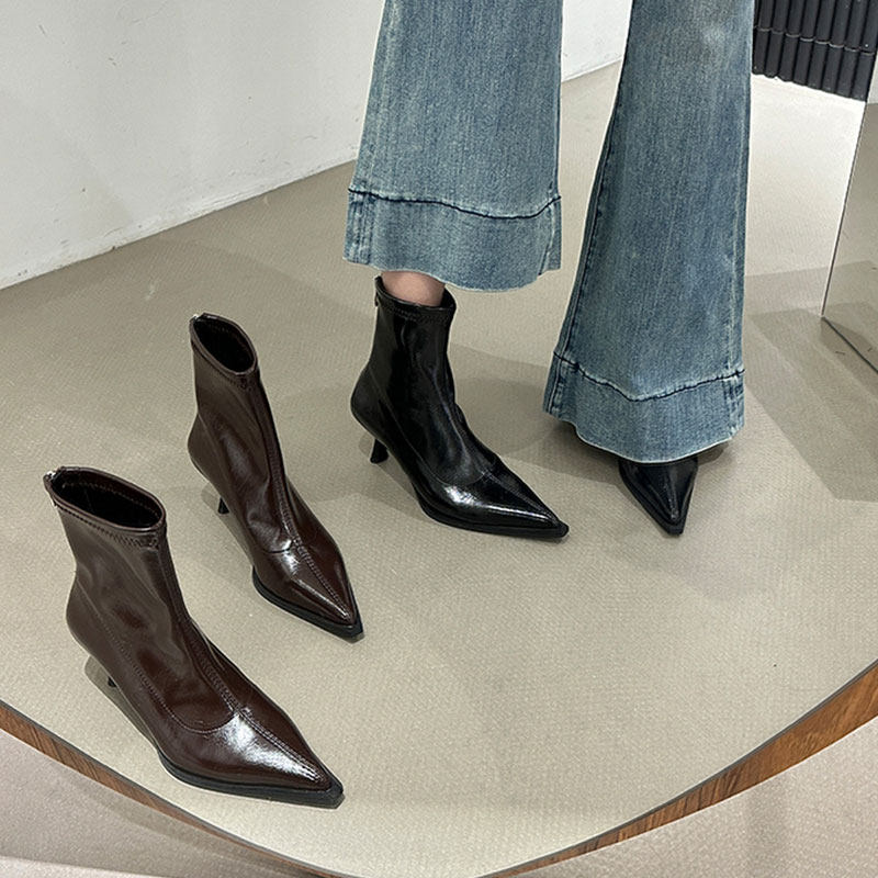 吴大叔2025秋冬季新款靴子女款美拉德尖头高跟女靴弹力短靴瘦瘦靴