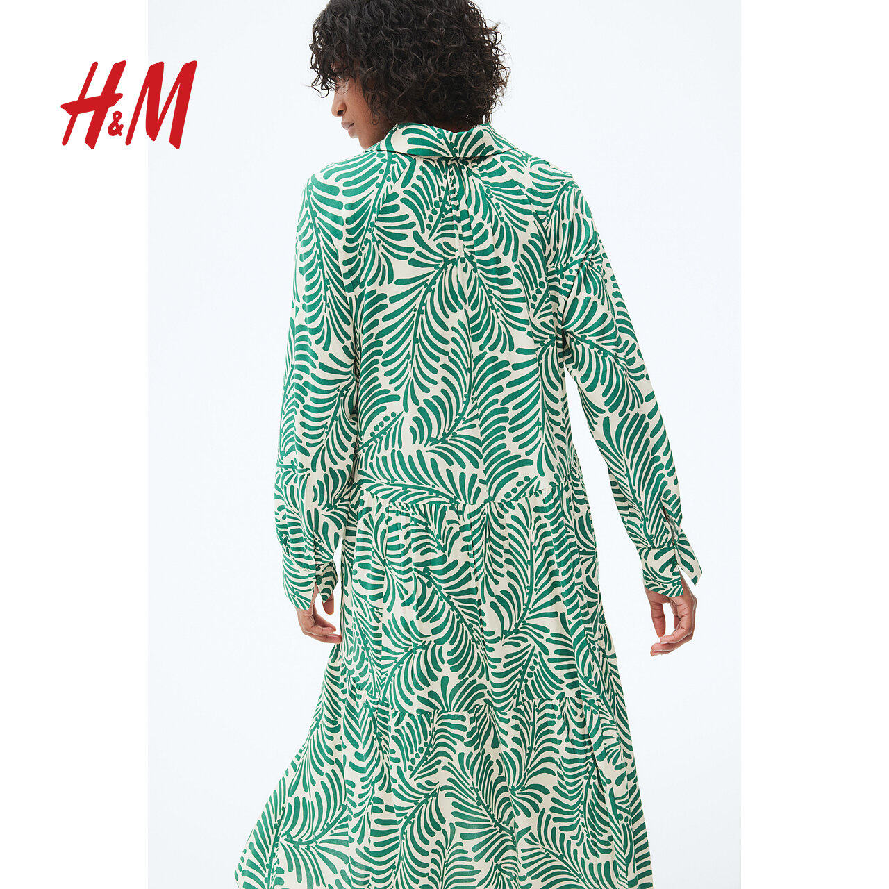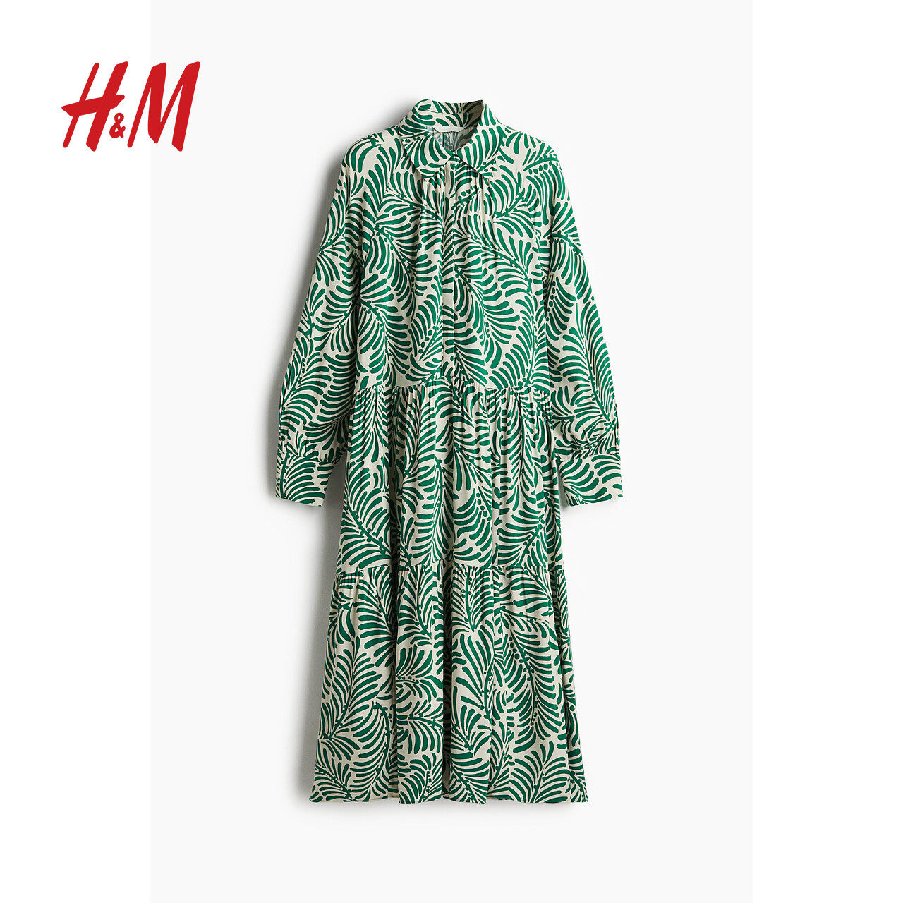 HM女装连衣裙2025冬季新款气质法式翻领收腰衬衫式长裙1263590