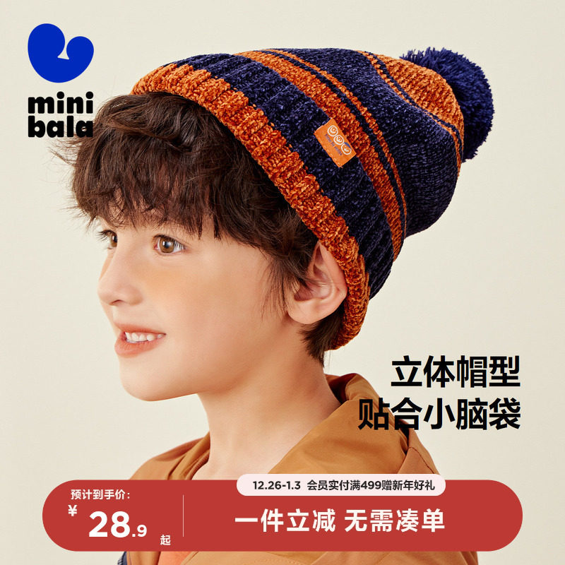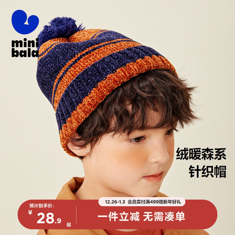 迷你巴拉巴拉春秋新款男女童学院撞色针织帽宝宝保暖森系帽子