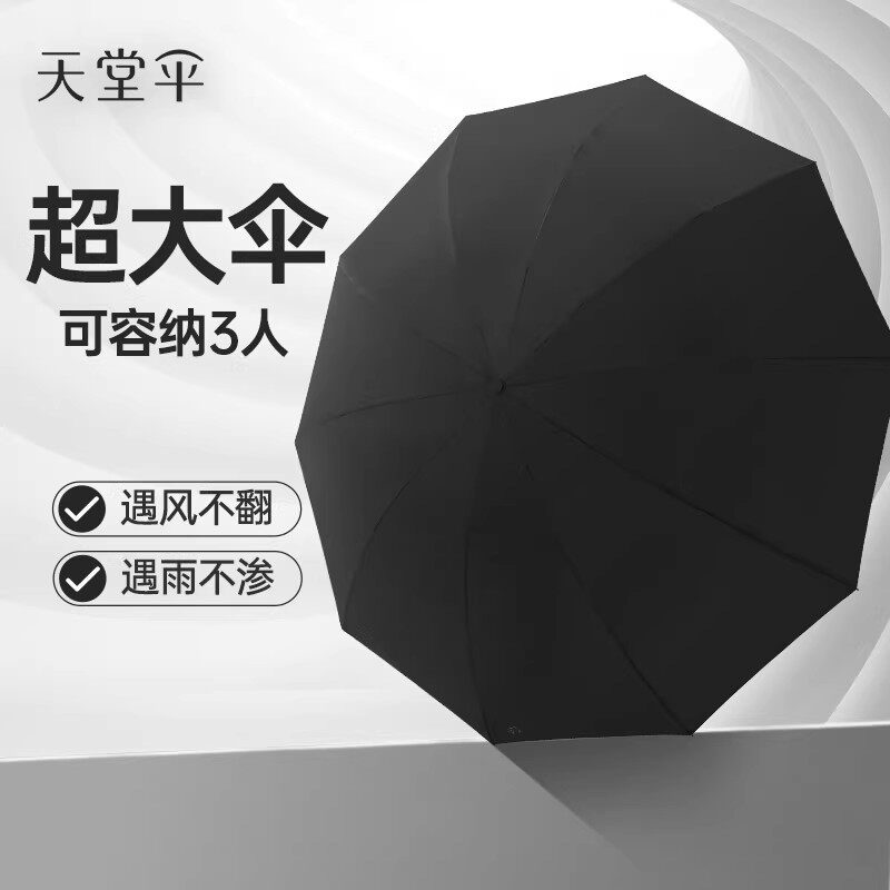 天堂伞双人超大号晴雨伞加厚加固两用防风伞折叠三折男女便携雨伞