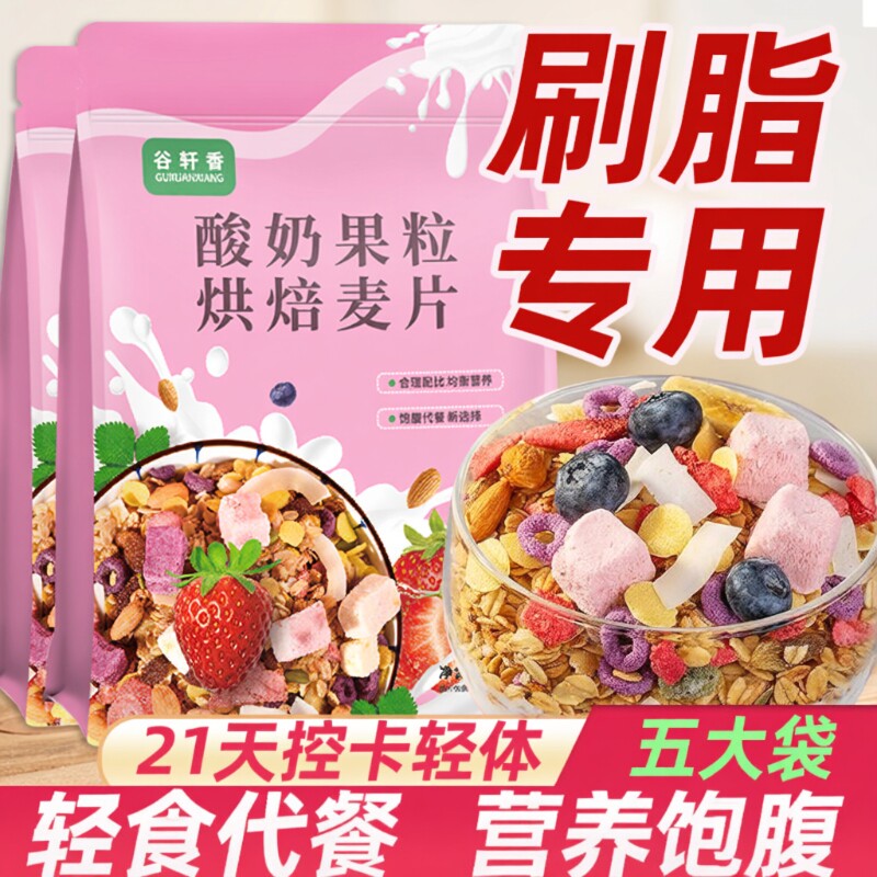 酸奶水果燕麦片营养早餐即食冲饮低无减燕麦肥代餐专用正品饱腹