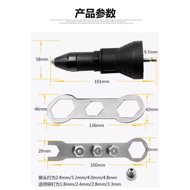 电动铆钉枪 抽芯拉铆枪转换头 拉铆抢铆钉抢拉钉抢拉卯抢铆钉枪头