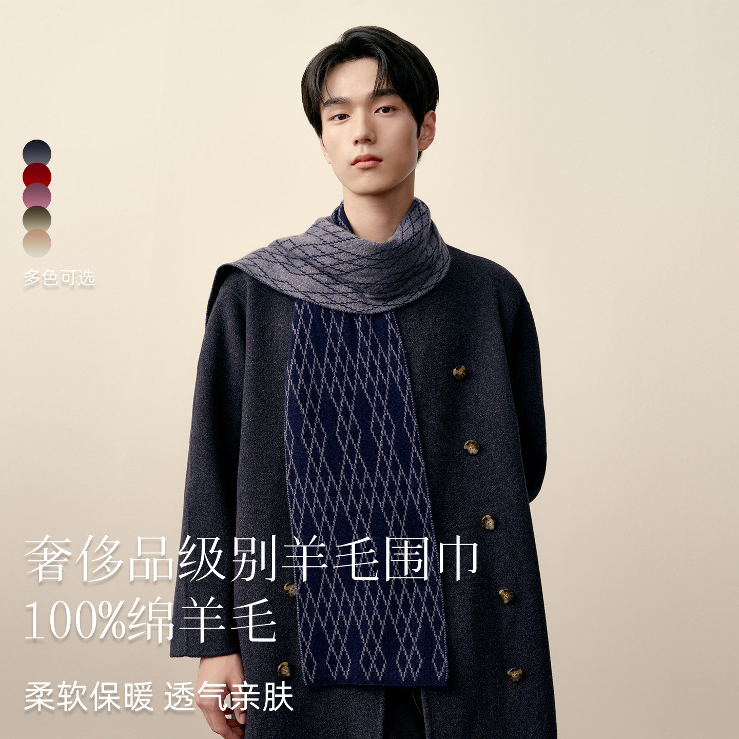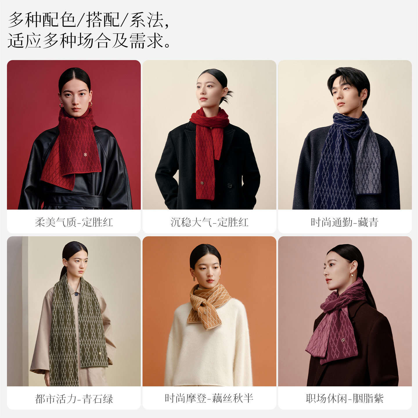 万事利秋冬季100%绵羊毛红色围巾女加厚保暖男女情侣围脖交错时空