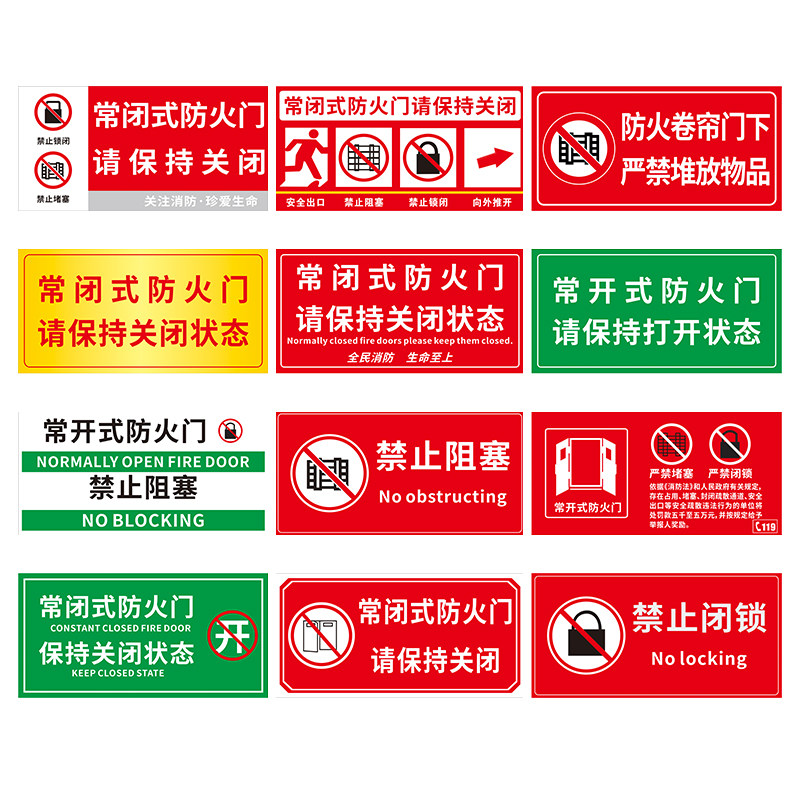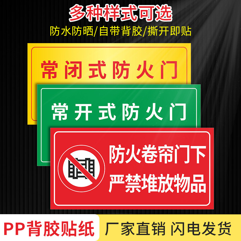 常闭式常开式防火门请保持关闭开启状态标识牌贴纸标志牌消防验收安全防火门防火卷帘门下严禁堆放标识定制