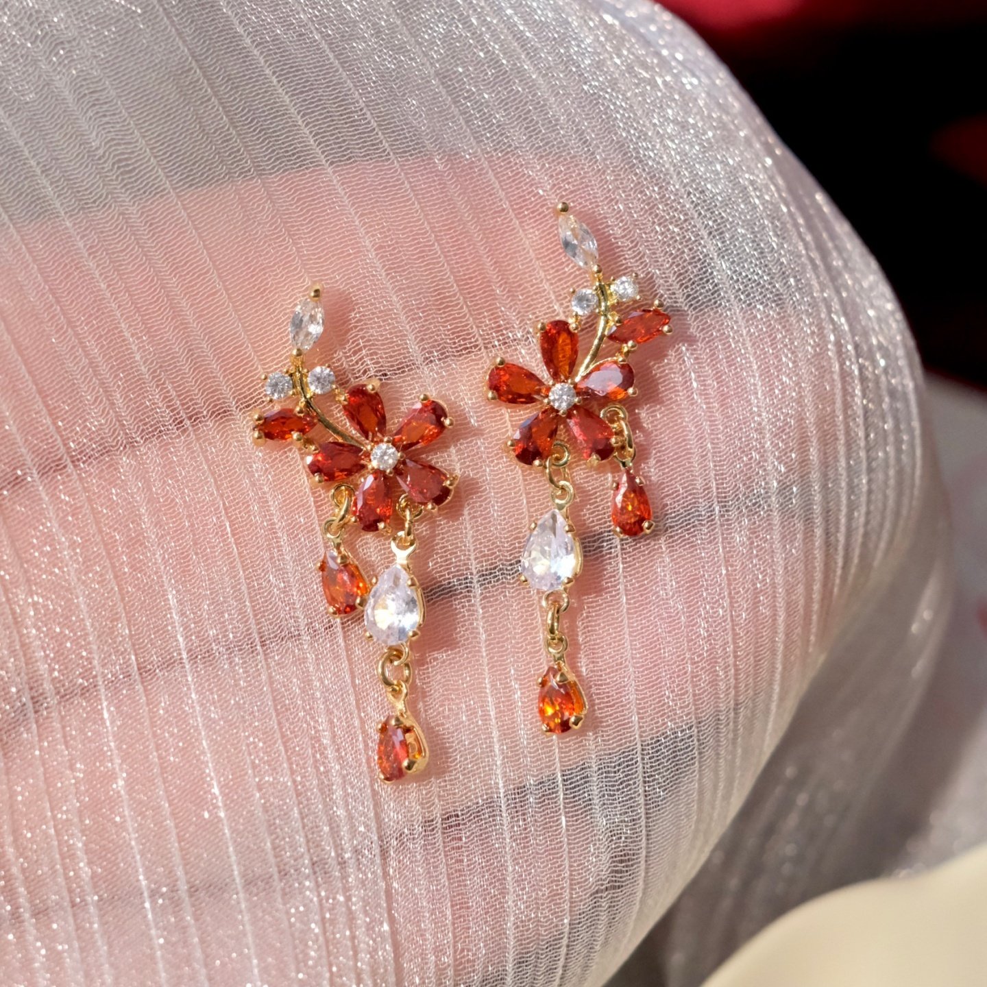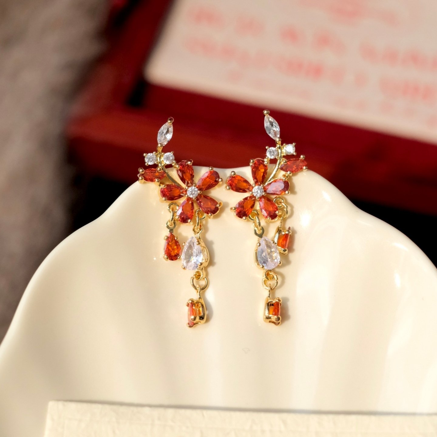 《红昭愿》新年氛围感精致轻奢复古红色超闪水滴流苏耳环耳钉耳夹