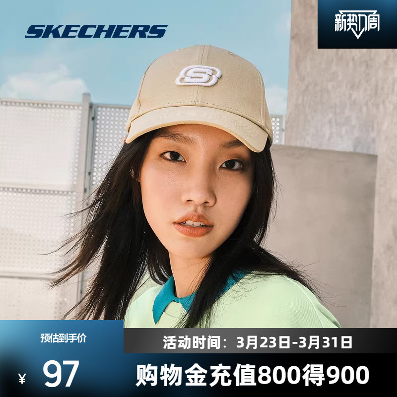 斯凯奇男女同款防晒帽遮阳帽运动刺绣鸭舌帽休闲情侣棒球帽