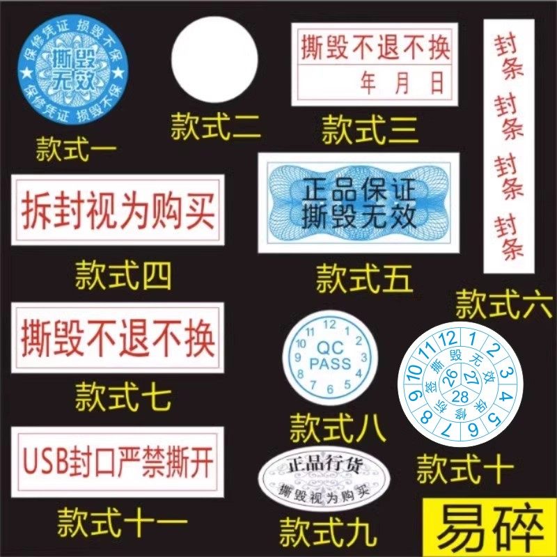 诗束 现货撕毁无效标签易碎纸保修贴手机维修贴电脑贴纸定做封条不干胶2