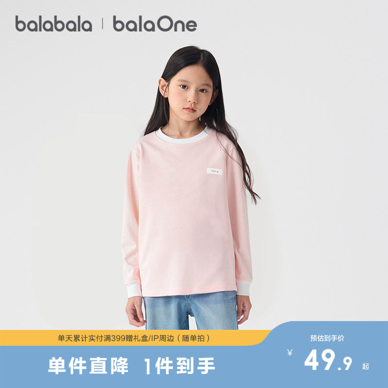 【balaOne】巴拉巴拉童装儿童卫衣女童2025新款秋冬装长袖t恤亲子