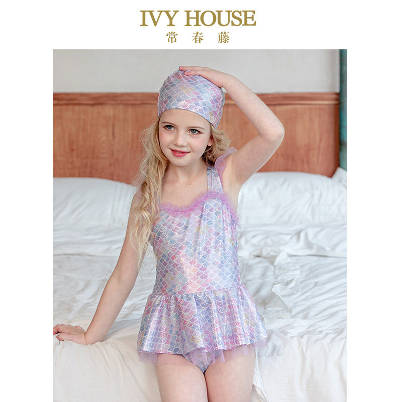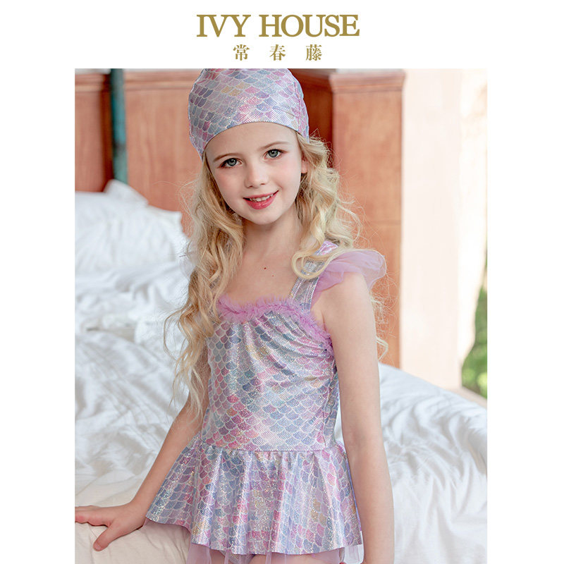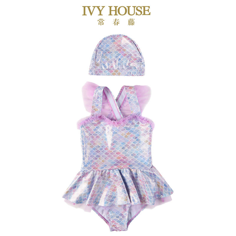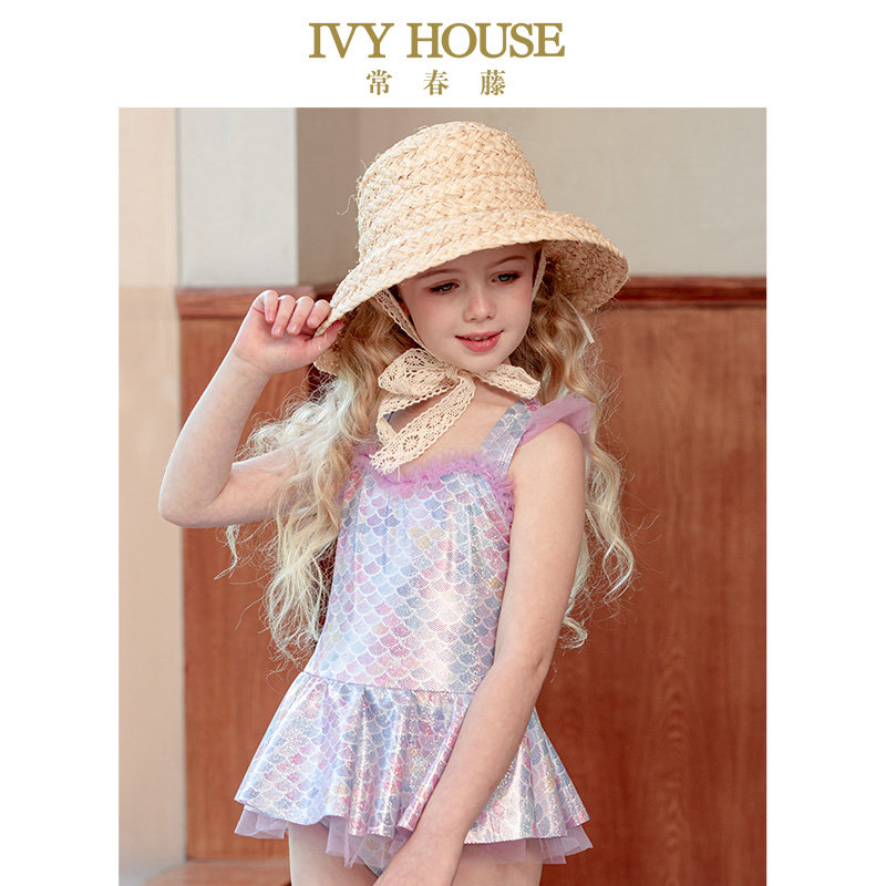IVY HOUSE常春藤女童夏连体游泳衣裤宝宝泳装小公主幻彩美人鱼