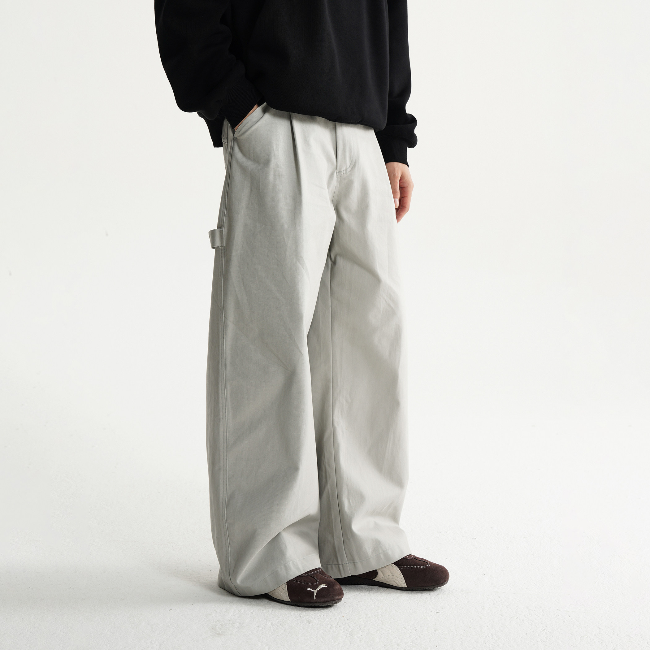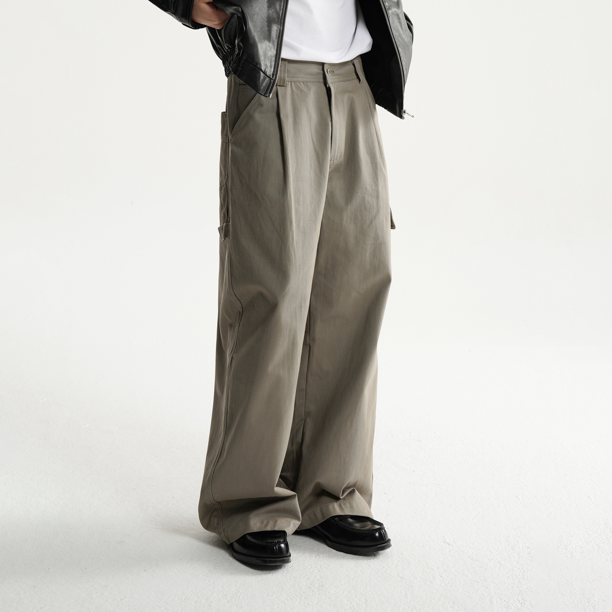 LR MADE 25SS 侧缝打褶 小弯刀垂感 碳磨洗水纯棉休闲廓形长裤