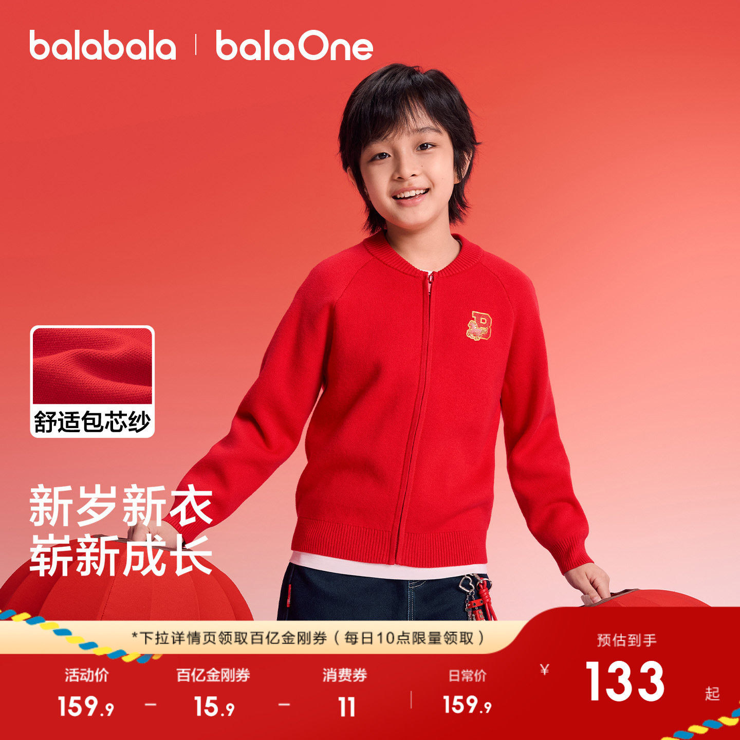 巴拉巴拉童装儿童毛衣男童女童2026新款春秋装红色针织开衫拜年服
