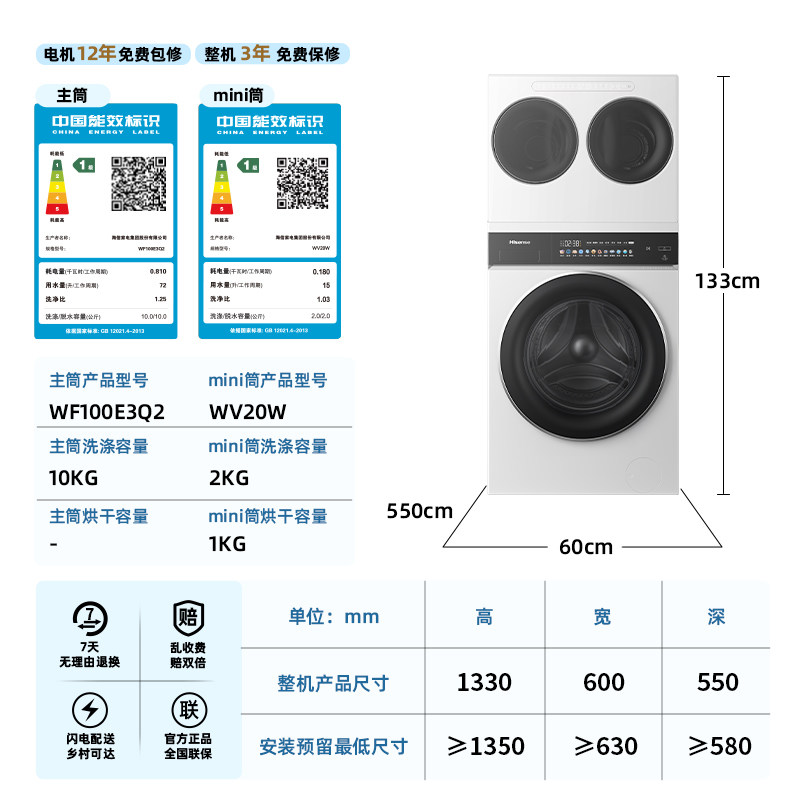 海信全家筒三筒洗衣机3洗2烘大容量 活水健康 三桶自由组合E3Q2