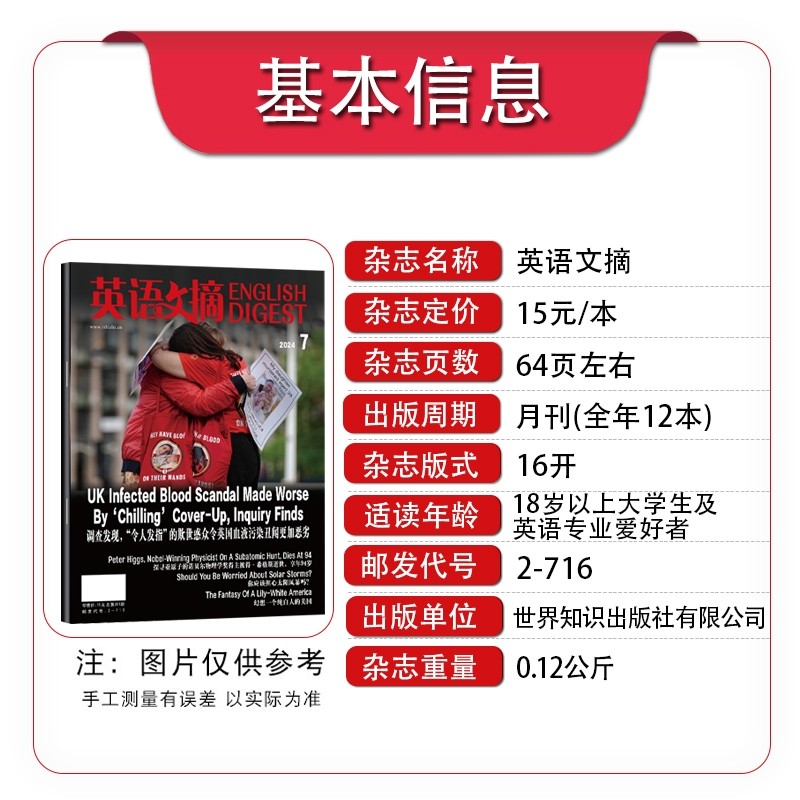 英语文摘杂志2025年12月现货【2026全年/半年订阅】中英文双语学习大学四六级考研英语新闻书籍世界合订本经济时代文章非2024过刊