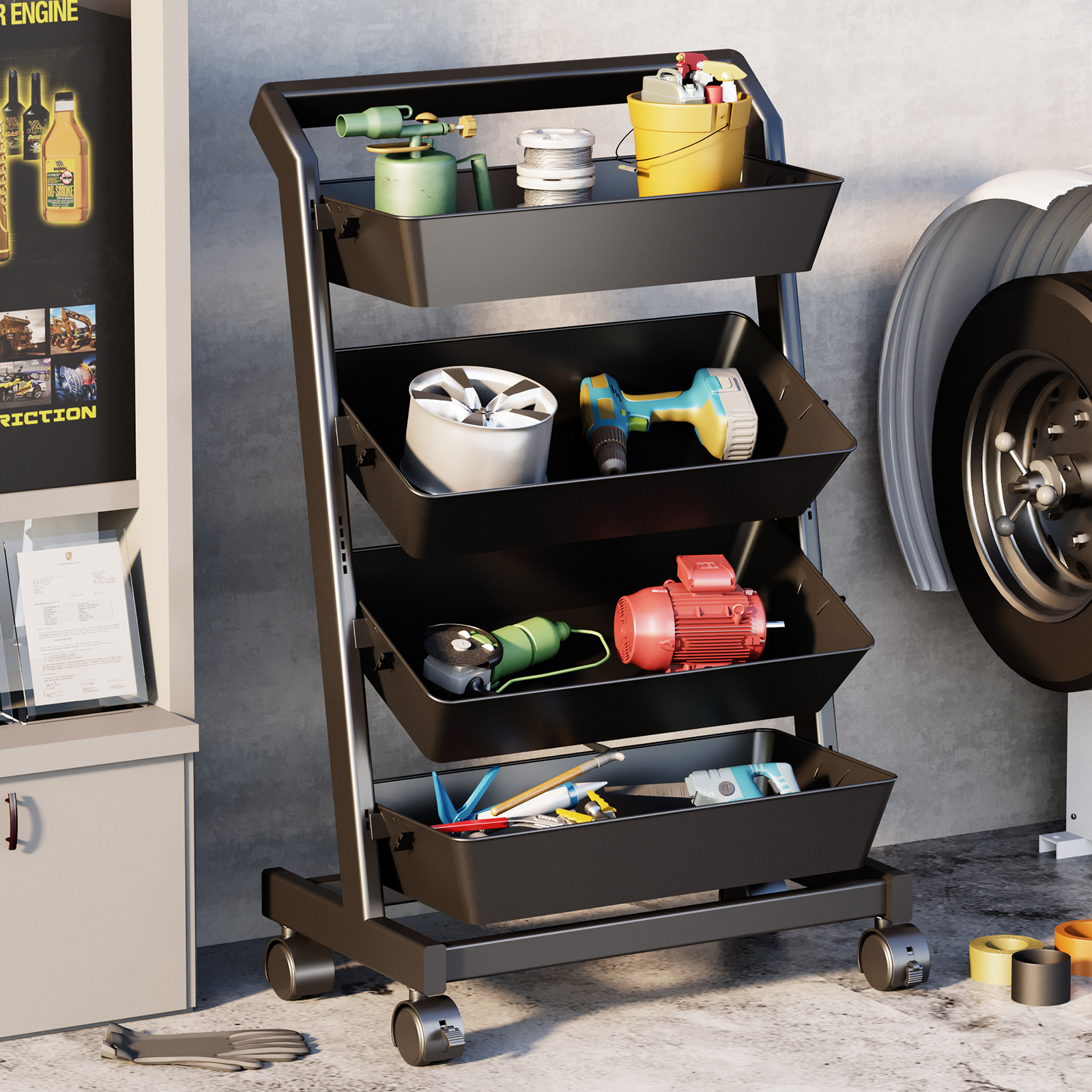 加厚小推车碳钢置物架厨房客厅落地移动卧室多层浴室收纳储物架子