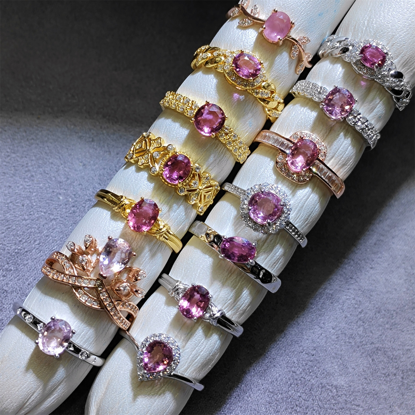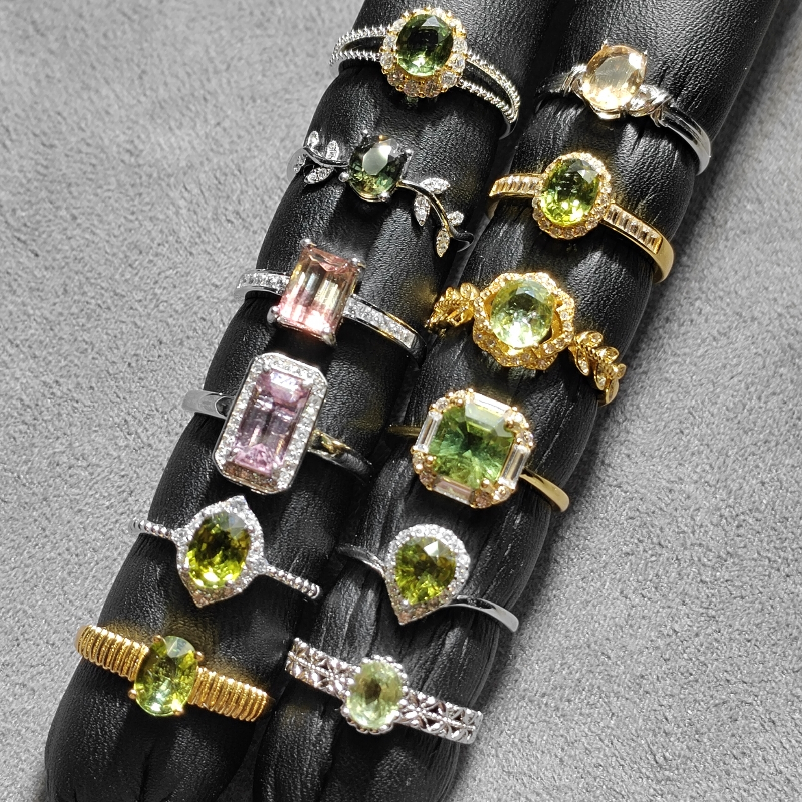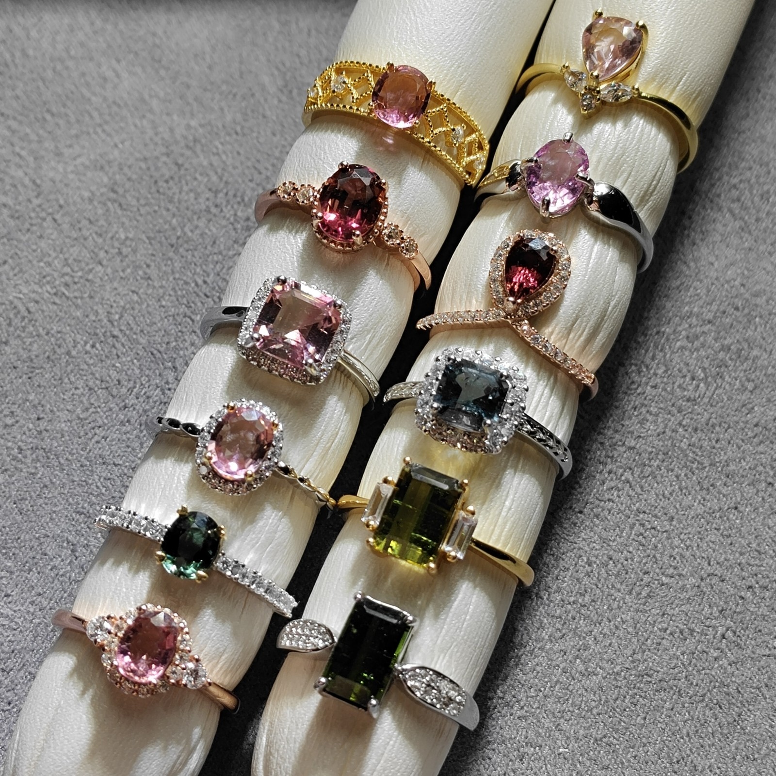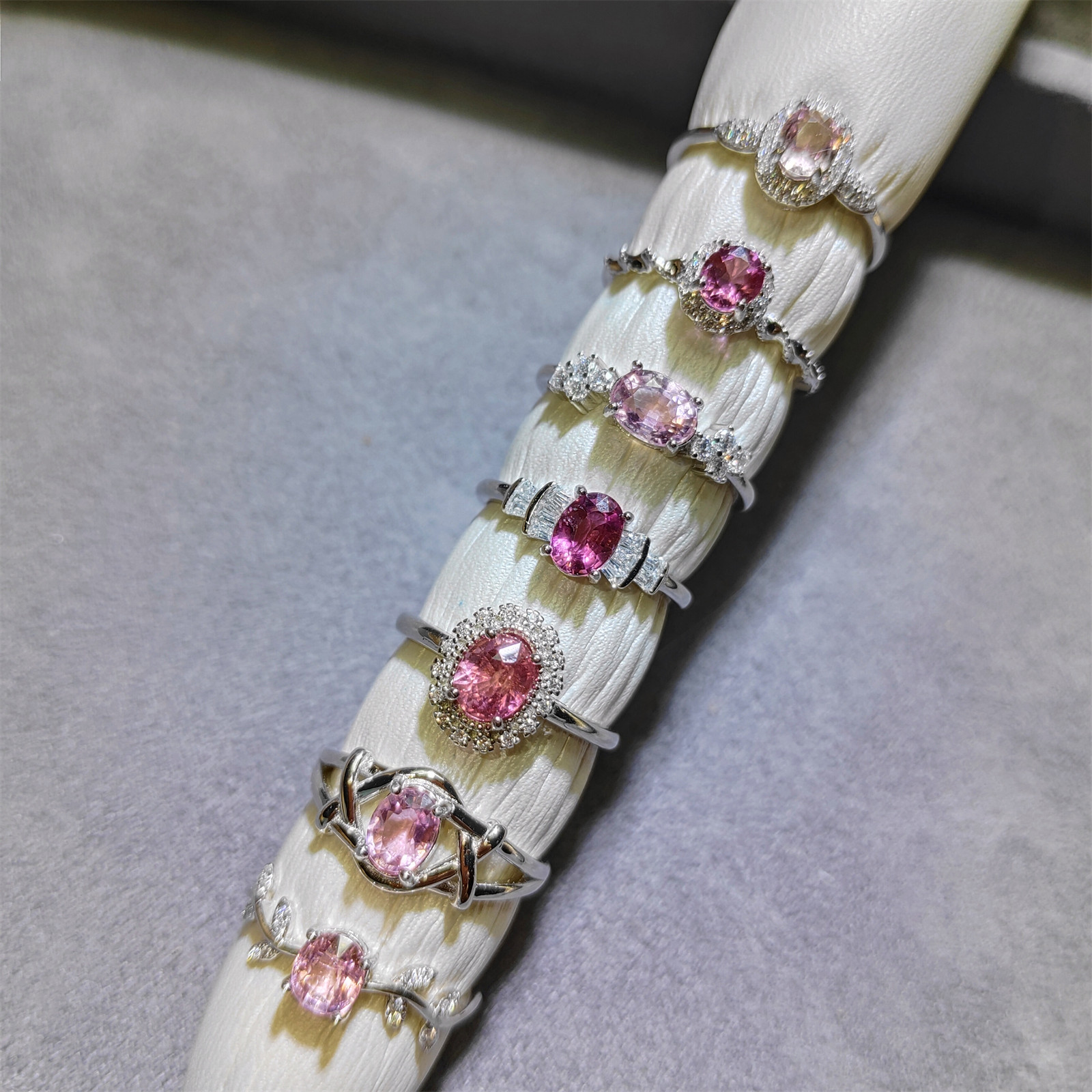 天然碧玺戒指樱花粉碧玺薄荷绿碧玺925银镶嵌戒指镶金级净体火彩