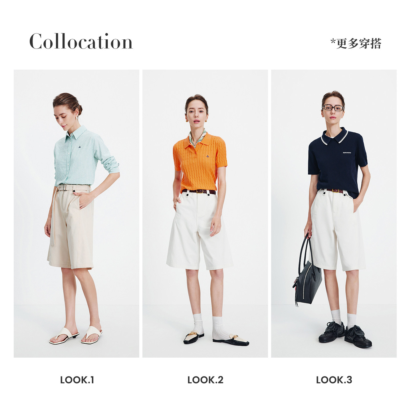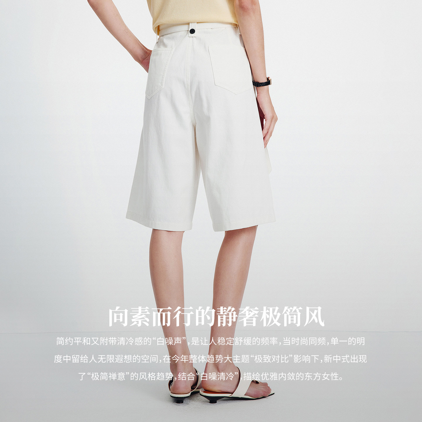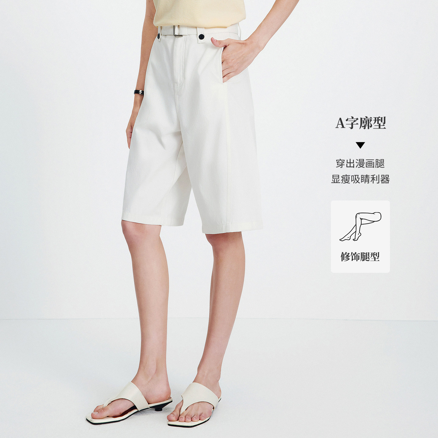 Navigare意大利小帆船白色五分裤纯棉休闲裤女2026春季显瘦中裤子