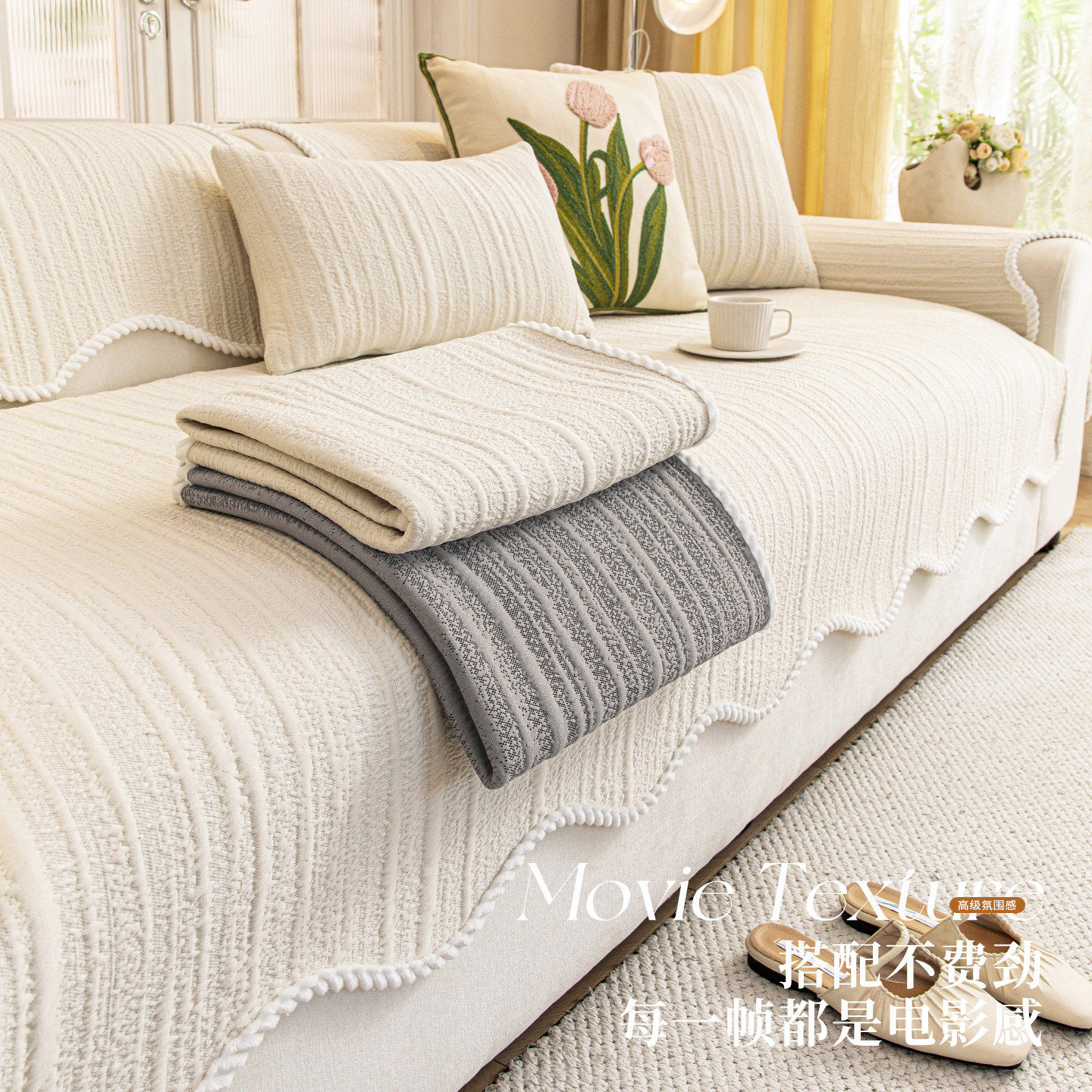 直排沙发垫四季通用2026新款固定防滑盖布轻奢防猫抓一片式套罩垫