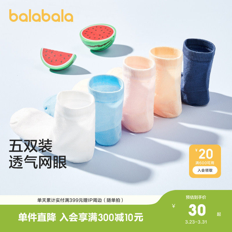巴拉巴拉儿童袜子夏季网眼儿童运动风透气男童女童小童宝宝五双装