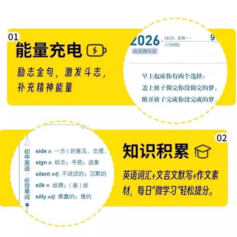 化茧成蝶2026年初中高中励志金句日历语文英语知识点鱼跃龙门高颜值中国全彩古诗词创意自律学习365天桌面摆件台历每日暖心古诗文