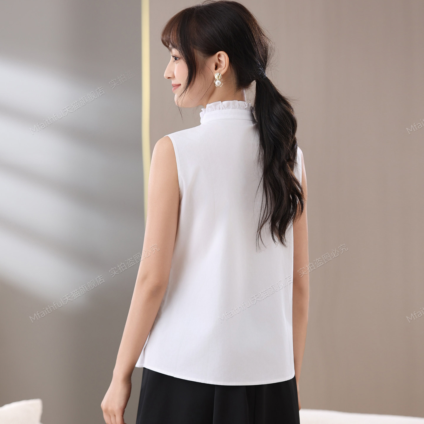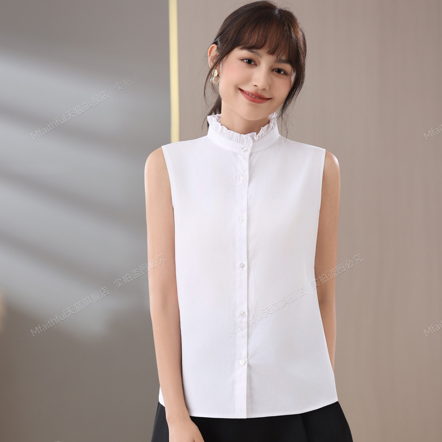 木耳边无袖衬衫女轻奢高级感通勤立领白色纯棉内搭显瘦假领子衬衫