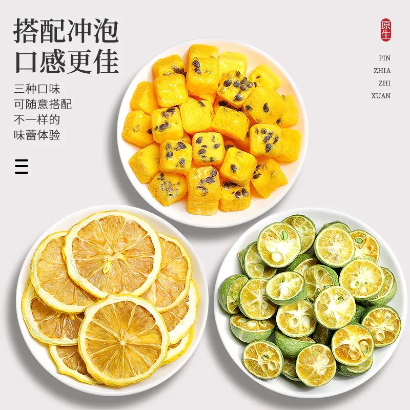 青桔柠檬百香果冲饮冷泡青橘柠檬片果茶百香果冻干水果茶泡水袋装