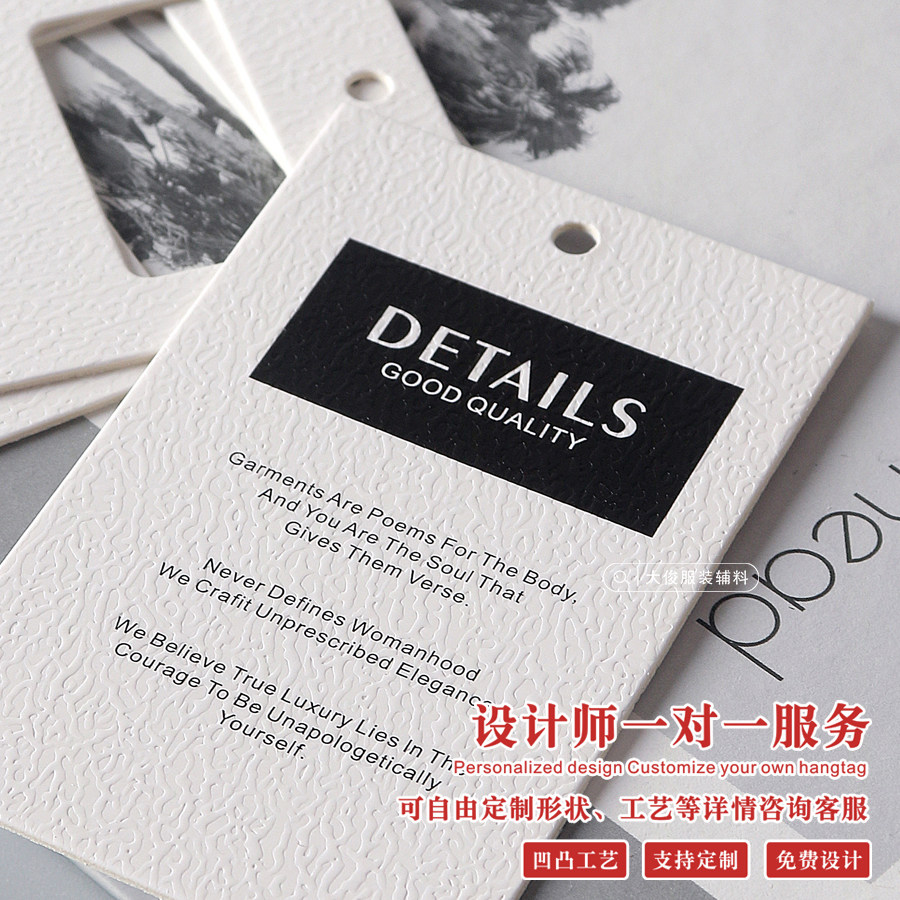 吊牌定制女装软装挂牌镂空设计加厚纹理纸张窗帘卡片订做服装吊卡