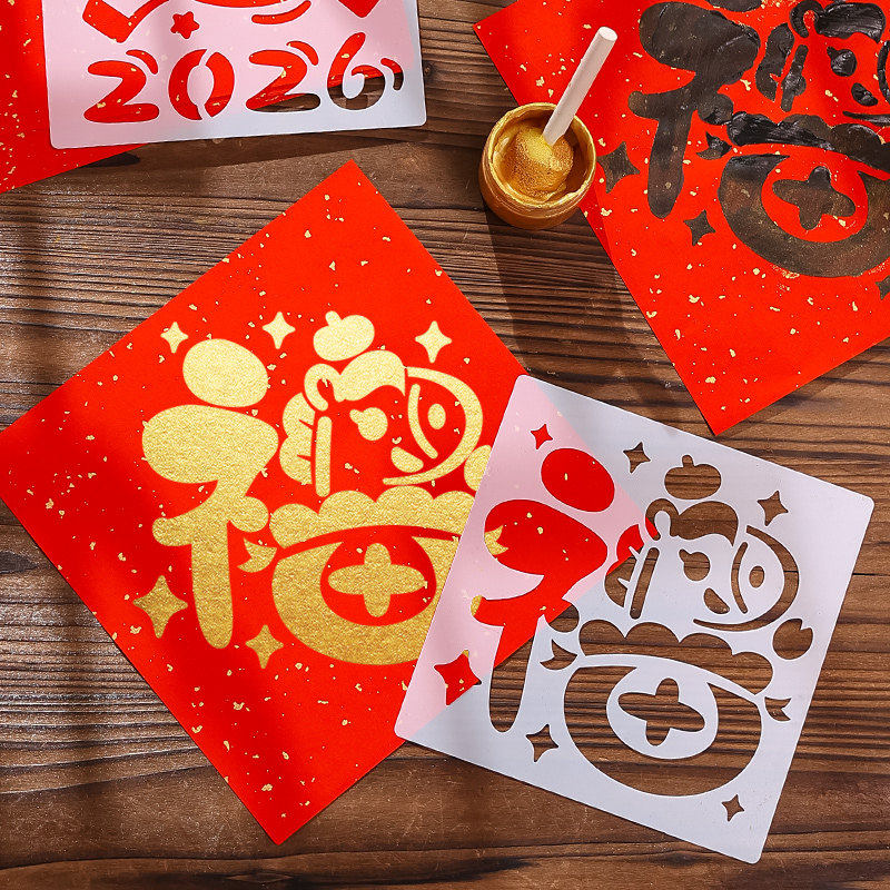 2026马年福字拓印年画diy手工材料非遗团建儿童过新年亲子活动制作套装幼儿园元旦春节镂空拓印模板工具颜料