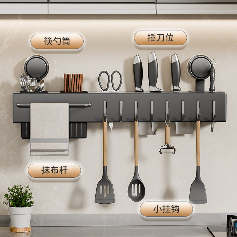 厨房刀架置物架多功能新款台面筷子筒菜板一体壁挂刀具收纳架沥水