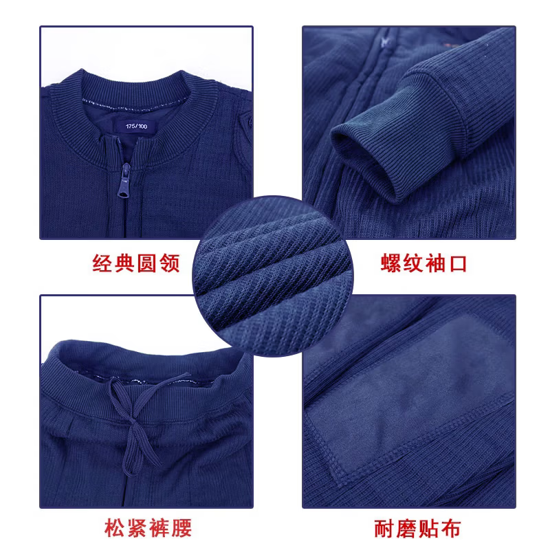 消绒衣裤蓝色套装男士加绒加厚毛线衣抓绒衣冬季保暖绒内衣裤制式