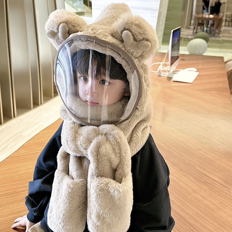 宝宝帽子冬保暖毛绒帽男女童防护面罩儿童围巾手套一体帽防风护耳