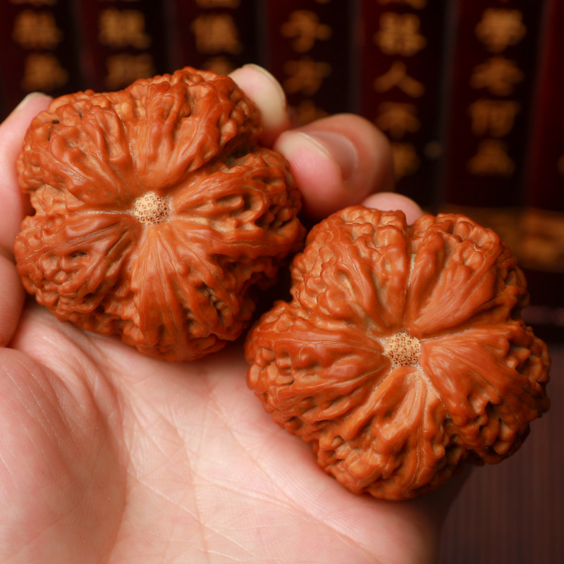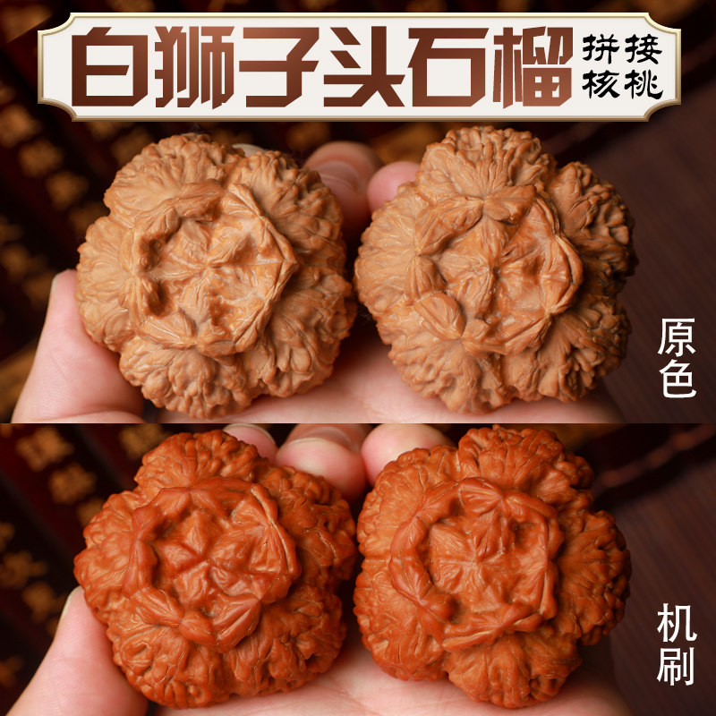 特大文玩核桃拼接异形石榴五瓣莲花官帽四座楼白狮子头包浆手把件