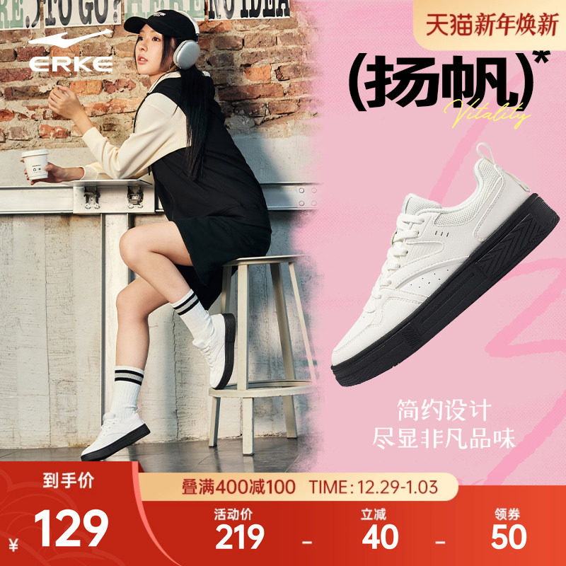 安踏元年丨板鞋女鞋冬季舒适厚底增高小白鞋轻便休闲鞋百搭运动鞋