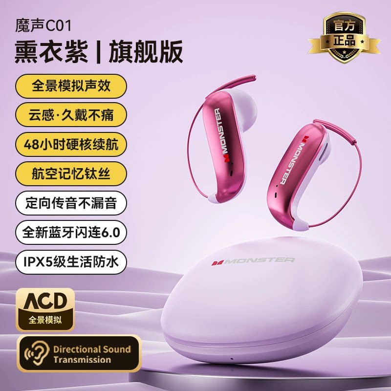 魔声蓝牙耳机C01二代无线耳挂式不入耳AI翻译同声传译通话降噪6.0