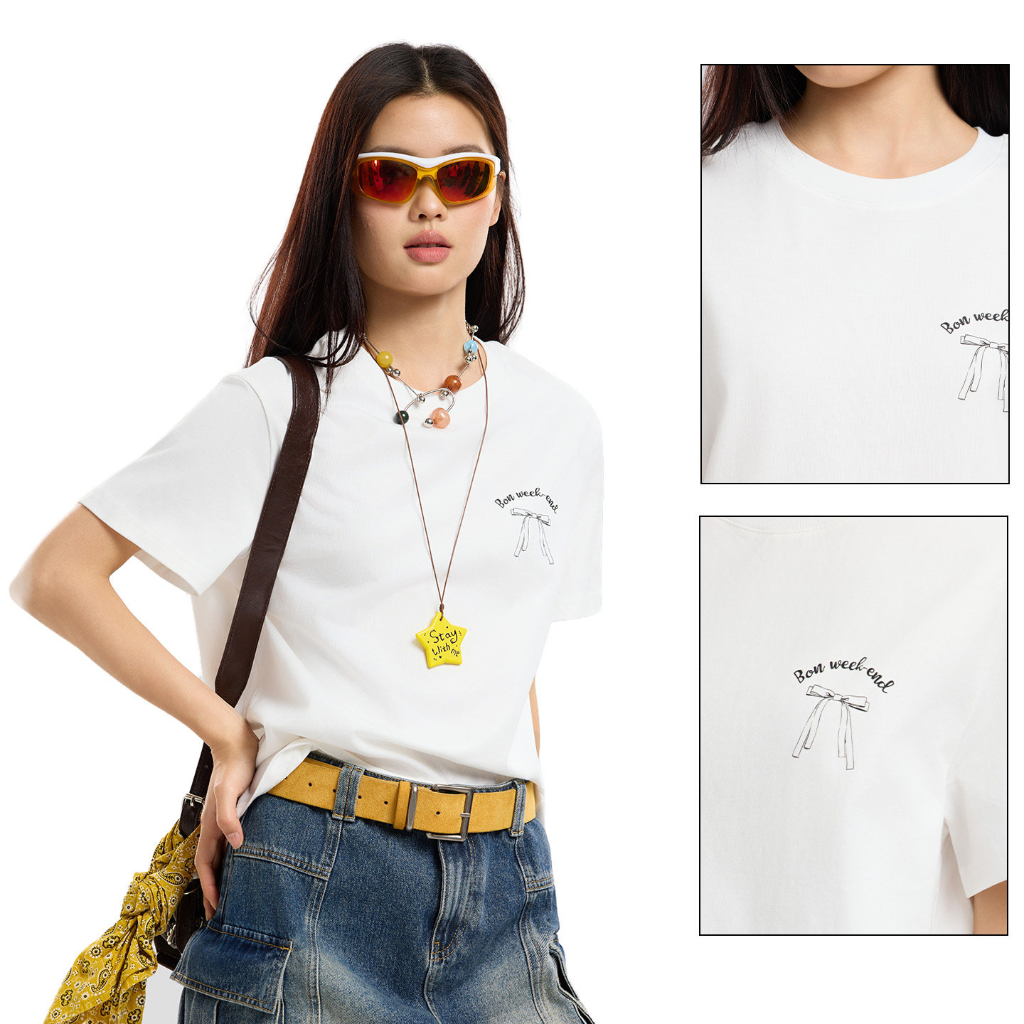 美特斯邦威短袖女夏季新款潮流简约宽松百搭圆领撞色水果印花T恤