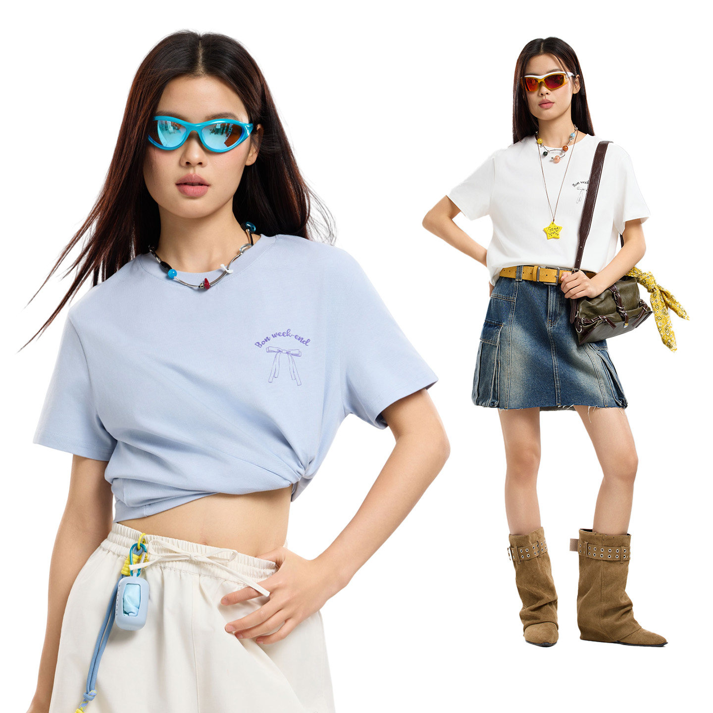 凉感T森马短袖T恤女短款修身正肩收腰2025夏新款上衣百搭白色体恤